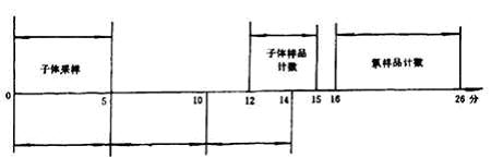 氣球法采樣系統(tǒng)示于圖4,其工作原理同雙濾膜法,只不過氣球代替了衰變筒。把氣球法測氡和馬爾柯夫法測潛能聯(lián)合起來,一次操作用26min,即可得到氡及其子體α潛能濃度。其時(shí)間程序示于圖5。